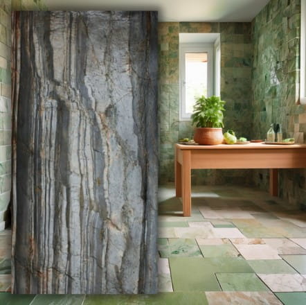 Fornir Kamienny Rainforest Green Marmurowy 122x61 Elastyczne panele elewacyjne