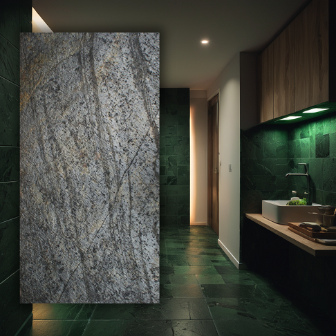 Fornir kamienny XXL - wielkoformatowy to innowacyjna, lekka i elastyczna okleina kamienna, idealna do nowoczesnych wnętrz. Umożliwia łatwy montaż na ścianach i meblach, zapewniając trwałe wykończenie i estetykę naturalnego kamienia. Jest wszechstronny i praktyczny, idealny dla wymagających przestrzeni użytkowych.