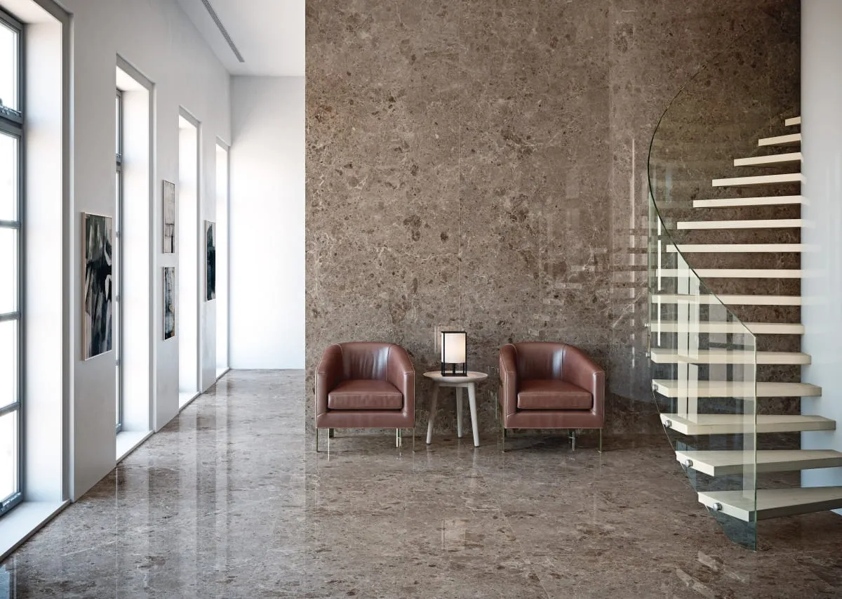 Każdy z tych kolorów występuje w wersji polerowanej, co nadaje powierzchni subtelny połysk, przypominający naturalne kamienie, i sprawia, że odbijają światło, optycznie powiększając przestrzeń. Polerowana powierzchnia dodaje elegancji i ekskluzywności, doskonale nadaje się zarówno do dużych, otwartych przestrzeni, jak i do mniejszych pomieszczeń.