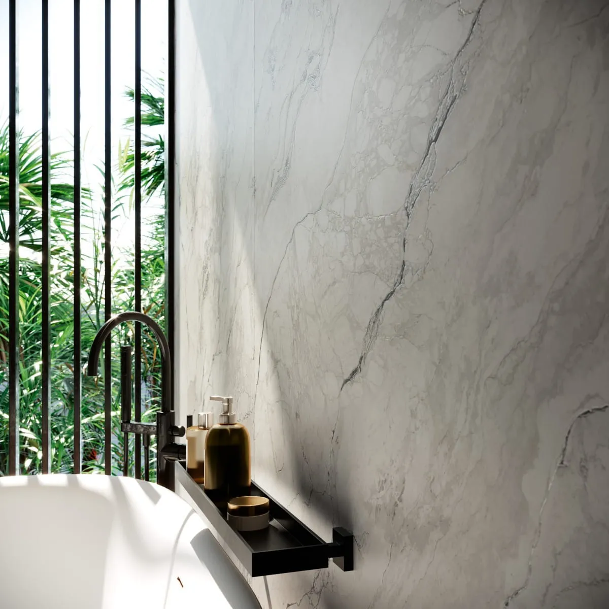 Widoczne na zdjęciu powierzchnie są zarówno subtelne, jak i imponujące, a wykończenie dostępne jest w dwóch wariantach: matowym oraz polerowanym. Matowe wykończenie nadaje płytkom delikatny, elegancki wygląd, który świetnie sprawdzi się w minimalistycznych wnętrzach, natomiast polerowana powierzchnia podkreśla głębię wzoru, nadając pomieszczeniom luksusowego blasku. Wybór między matowym a polerowanym wykończeniem pozwala dostosować wygląd spieku do indywidualnych potrzeb i gustów.