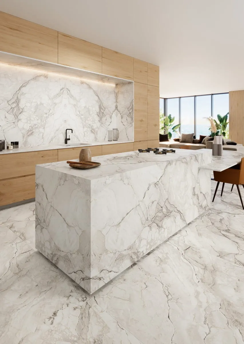 Widoczne na zdjęciu powierzchnie są zarówno subtelne, jak i imponujące, a wykończenie dostępne jest w dwóch wariantach: matowym oraz polerowanym. Matowe wykończenie nadaje płytkom delikatny, elegancki wygląd, który świetnie sprawdzi się w minimalistycznych wnętrzach, natomiast polerowana powierzchnia podkreśla głębię wzoru, nadając pomieszczeniom luksusowego blasku. Wybór między matowym a polerowanym wykończeniem pozwala dostosować wygląd spieku do indywidualnych potrzeb i gustów.