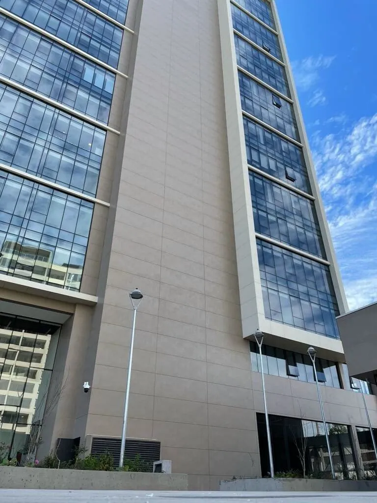 Elewacje – spieki kwarcowe Concrete mogą być stosowane na elewacjach budynków, dzięki czemu stają się one nie tylko eleganckie, ale również niezwykle odporne na zmienne warunki atmosferyczne. Duży format płyt minimalizuje liczbę połączeń, co przekłada się na spójność powierzchni oraz lepszą izolację termiczną. Dodatkowo, spieki kwarcowe są odporne na promieniowanie UV, co sprawia, że ich kolor nie blaknie pod wpływem słońca.