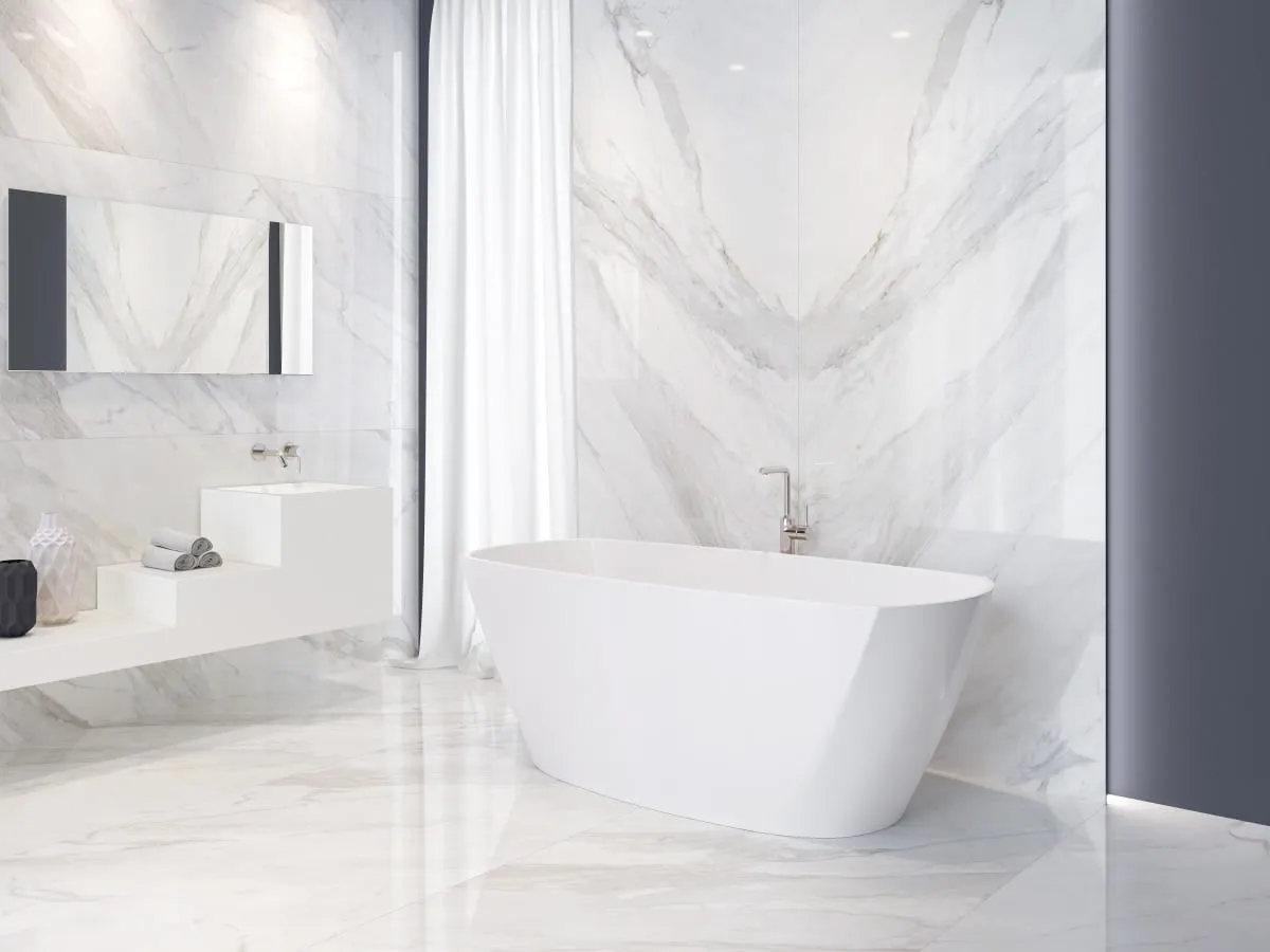 Wnętrza wykończone spiekami Calacata Marble zyskują na elegancji i przestronności. Doskonale nadają się do: