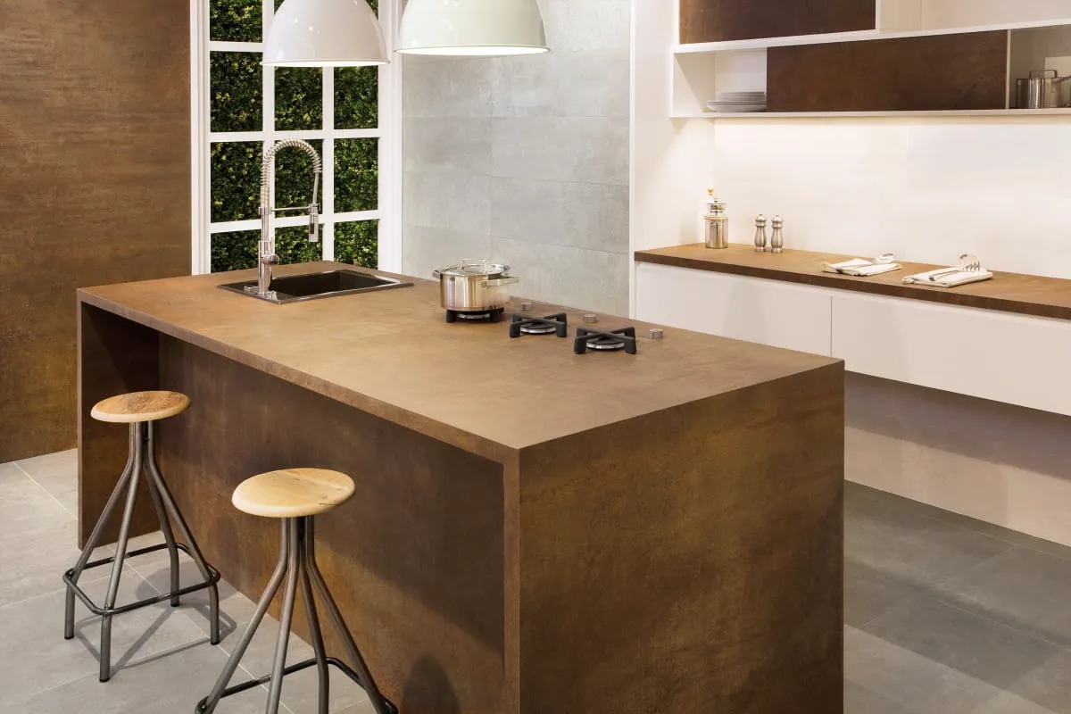 Seria spieków kwarcowych Lava od Grespania Coverlam to unikalna propozycja, która wnosi do architektury nowoczesny, industrialny styl. Wyróżnia się estetyką inspirowaną wyglądem skorodowanego metalu, co nadaje jej surowego, charakterystycznego uroku. Dzięki zaawansowanej technologii produkcji, Lava wiernie odwzorowuje efekt starzejącego się metalu, łącząc autentyczność wyglądu z trwałością spieku kwarcowego. Idealnie nadaje się do użytku w przestrzeni miejskiej, zapewniając industrialny akcent, który doskonale współgra z nowoczesnym designem.