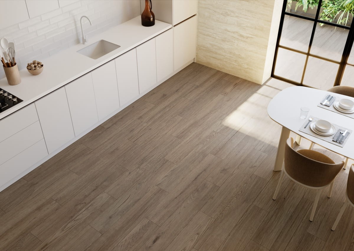 Abeto – jasny, niemal biały odcień, który wprowadza lekkość i świeżość do wnętrza. Idealny do nowoczesnych, minimalistycznych aranżacji, gdzie dominuje naturalne światło. Świetnie komponuje się z białym marmurem, tak jak imitacje Calacatta czy Estatuario, tworząc wyrafinowany, a zarazem spokojny efekt.