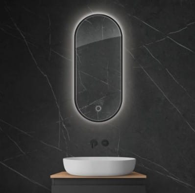 Taflę luster okala minimalistyczna rama wykonana z wysokiej jakości aluminium. Do wyboru klasyczny kolor - czarny mat lub elegancki - złoty połysk. Dla osób ceniących minimalizm dostępna jest opcja tafli bez ramy. Lustra Nordlis dostępne są w kształtach: okrągłym, owalnym i prostokątnym. Szeroka gama kształtów i kolorów pozwoli z łatwością wybrać opcję, która idealnie komponowała się będzie ze stylem Twojej łazienki.