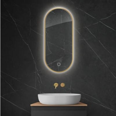 Taflę luster okala minimalistyczna rama wykonana z wysokiej jakości aluminium. Do wyboru klasyczny kolor - czarny mat lub elegancki - złoty połysk. Dla osób ceniących minimalizm dostępna jest opcja tafli bez ramy. Lustra Nordlis dostępne są w kształtach: okrągłym, owalnym i prostokątnym. Szeroka gama kształtów i kolorów pozwoli z łatwością wybrać opcję, która idealnie komponowała się będzie ze stylem Twojej łazienki.