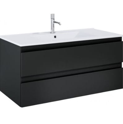 Oltens Vernal szafka 100 cm podumywalkowa wisząca z umywalką czarny mat/ biały połysk 68463300