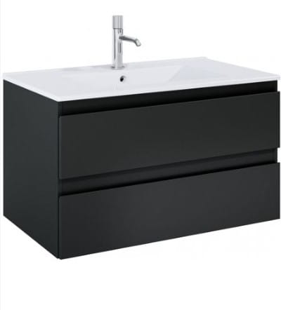 Oltens Vernal szafka 80 cm podumywalkowa wisząca z umywalką czarny mat/biały połysk 68462300