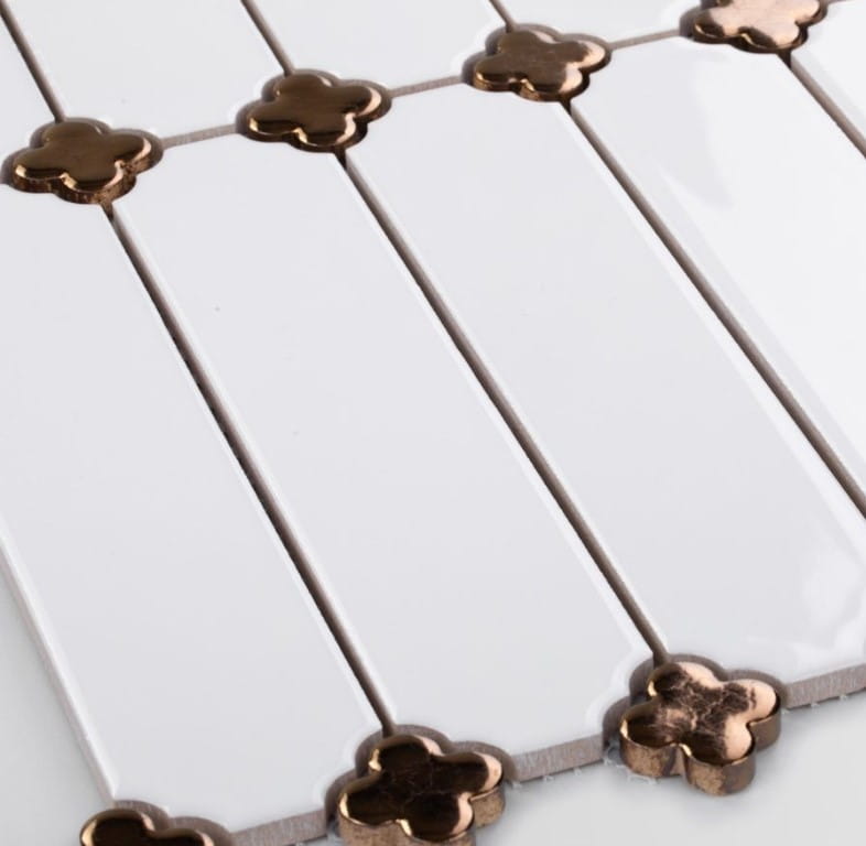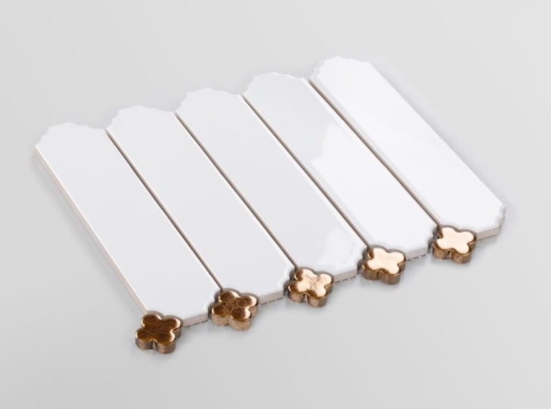 Płytka Cecile Biały Połysk z Koniczyną Vintage Gold