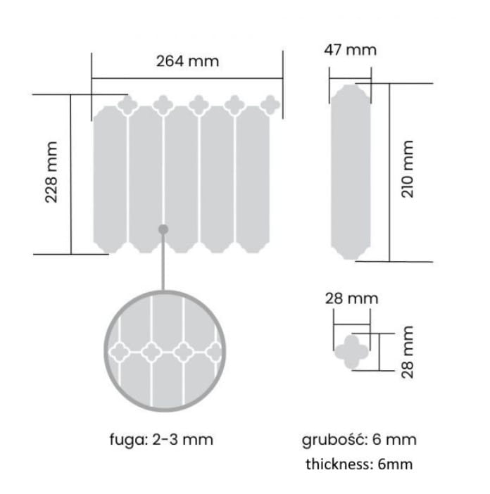Kalibrowane krawędzie mozaiki zapewniają idealne wykończenie i piękny efekt po zafugowaniu, podkreślając precyzję wykonania.