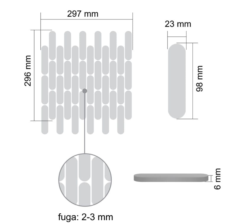 Kalibrowane krawędzie mozaiki zapewniają idealne wykończenie i piękny efekt po zafugowaniu, podkreślając precyzję wykonania.