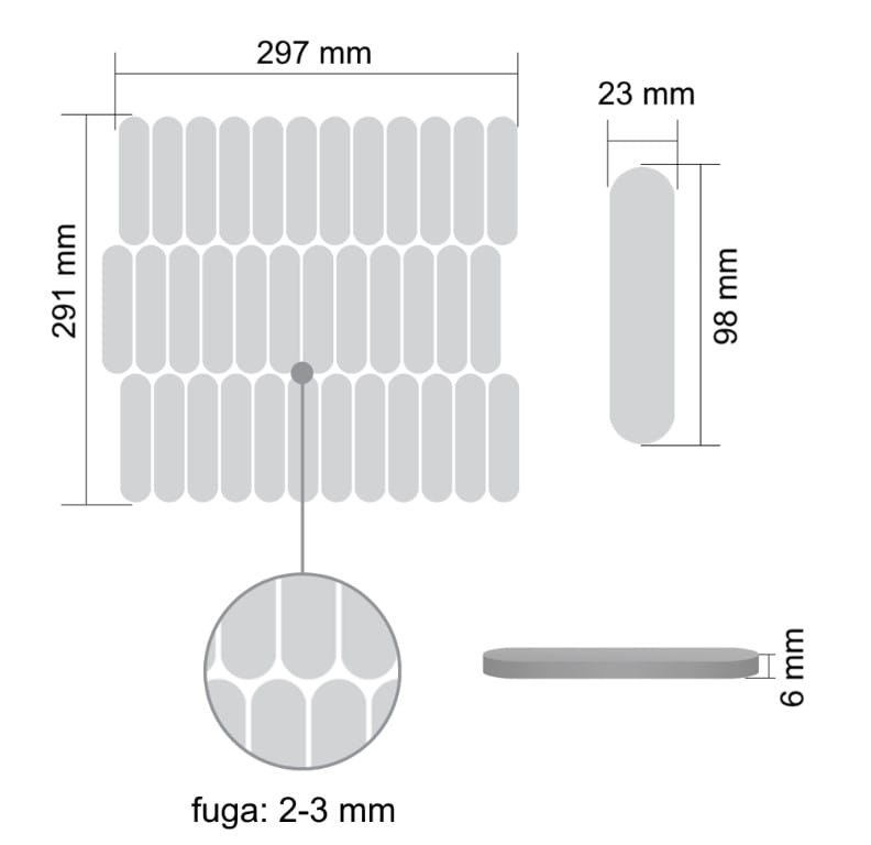 Kalibrowane krawędzie mozaiki zapewniają idealne wykończenie i piękny efekt po zafugowaniu, podkreślając precyzję wykonania.