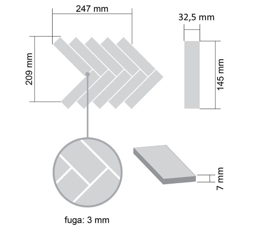 Płytka Jodełka XL Biała Matowa 247 x 209mm