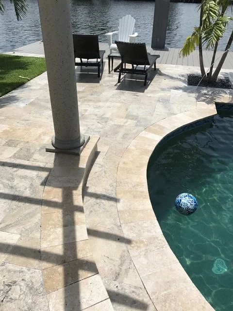 Trawertyn 8cm Kamień brzegowy Silver Latte Greige Bębnowany Szlif 120x30 | Obrzeża do basenu