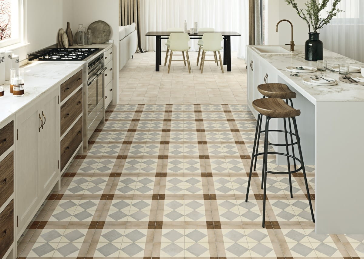 Podłogi w małych pomieszczeniach: W niewielkich pomieszczeniach, takich jak toalety czy pralnie, małe płytki mogą sprawić, że przestrzeń wydaje się większa.