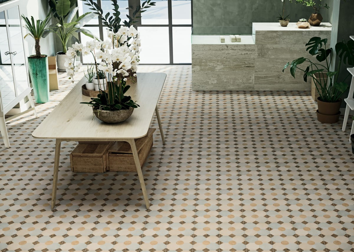 Podłogi w małych pomieszczeniach: W niewielkich pomieszczeniach, takich jak toalety czy pralnie, małe płytki mogą sprawić, że przestrzeń wydaje się większa.