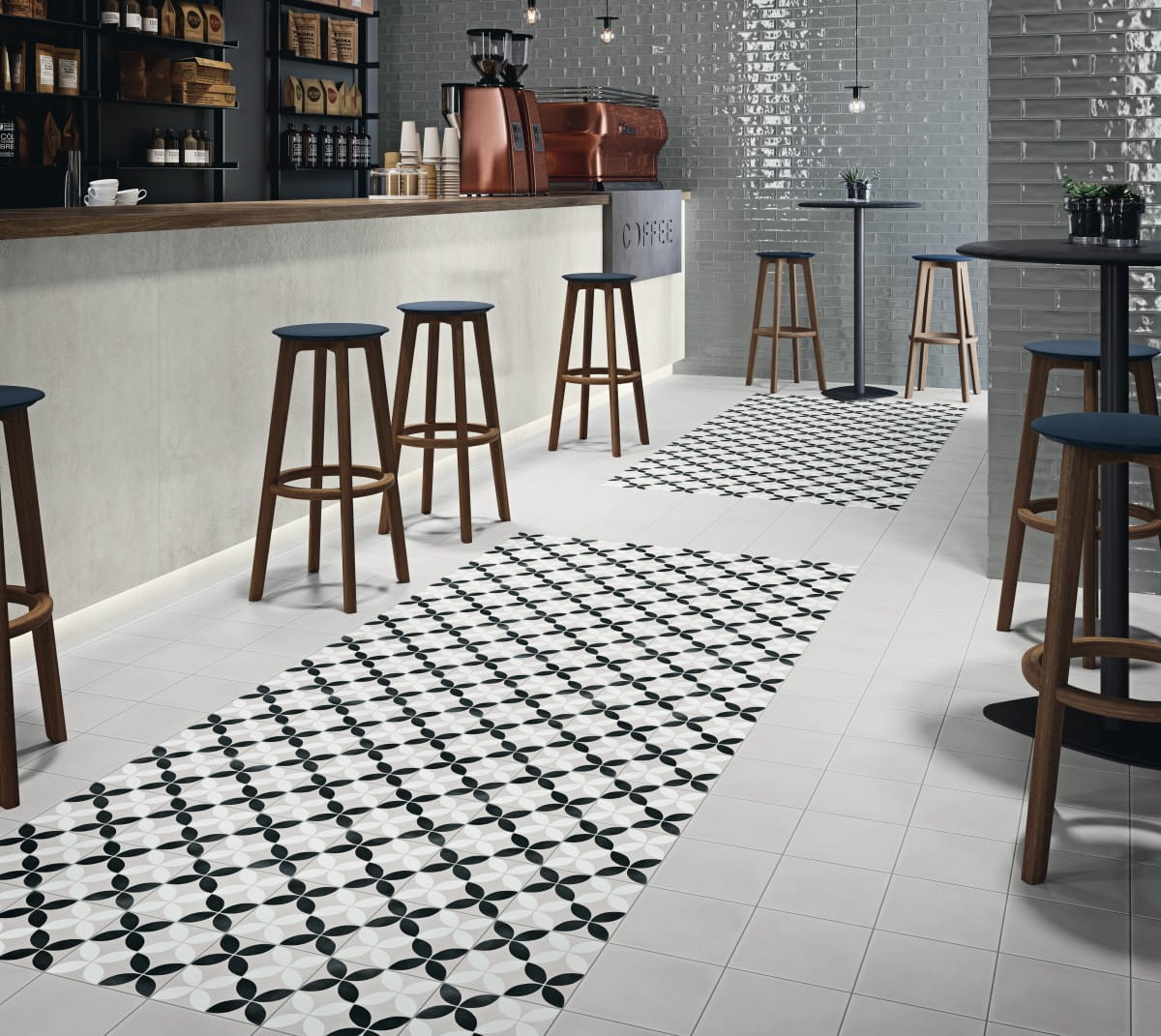 Podłogi w małych pomieszczeniach: W niewielkich pomieszczeniach, takich jak toalety czy pralnie, małe płytki mogą sprawić, że przestrzeń wydaje się większa.