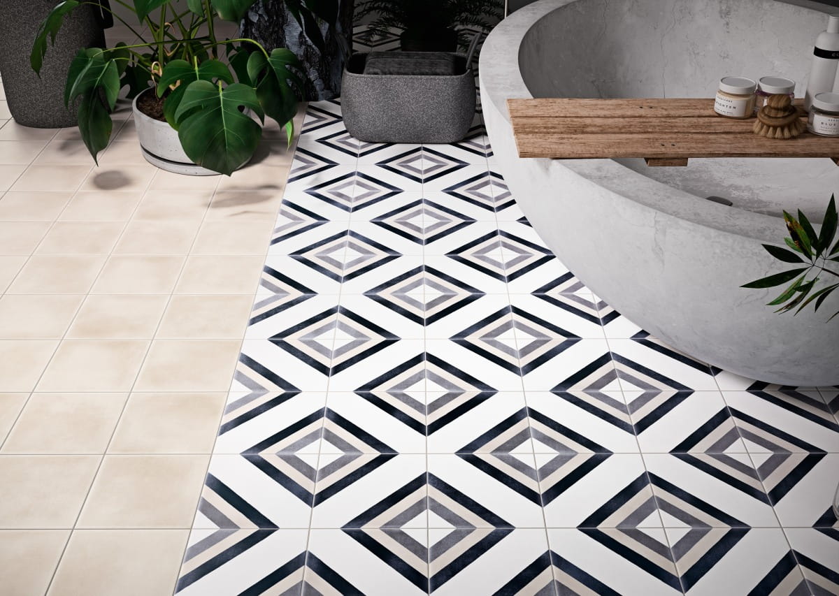 Podłogi w małych pomieszczeniach: W niewielkich pomieszczeniach, takich jak toalety czy pralnie, małe płytki mogą sprawić, że przestrzeń wydaje się większa.