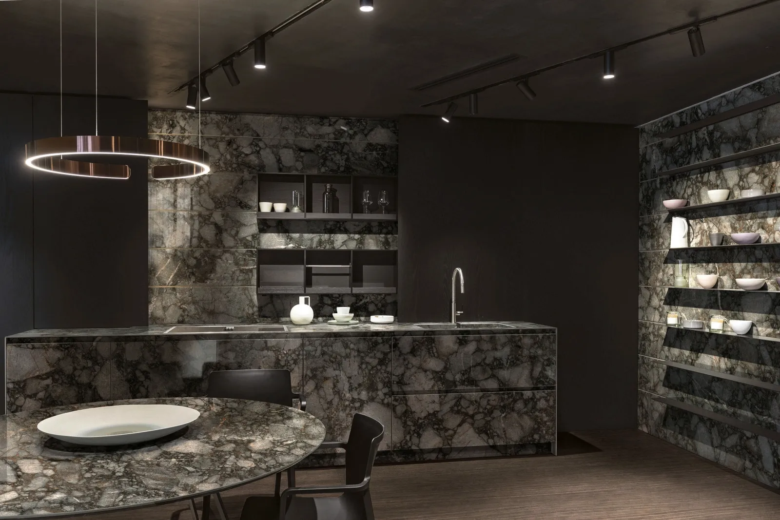 Dla branży marketingowej i retail kluczowa jest waga materiału. Spiek o grubości 0,6 cm jest stosunkowo lekki, co pozwala na obkładanie nim mebli ekspozycyjnych, wysp w galeriach handlowych czy zabudowy stoisk targowych bez nadmiernego obciążania konstrukcji. Efektowny połysk przyciąga wzrok klientów, budując wizerunek marki premium, a wytrzymałość materiału sprawia, że stoisko przetrwa wielokrotny montaż i transport.