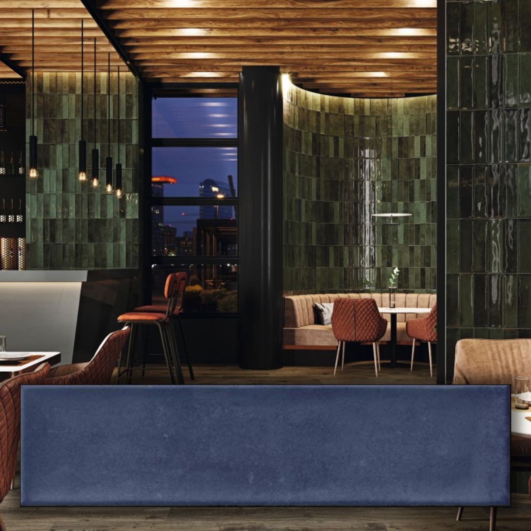 Listelo Rambla Zafiro 7,5x30 łączy elegancję z nowoczesnością, tworząc stylowe i efektowne aranżacje, które wzbogacają każde wnętrze o wyjątkowy design i intensywny kolor, wprowadzając do niego odrobinę luksusu i wyrafinowania.